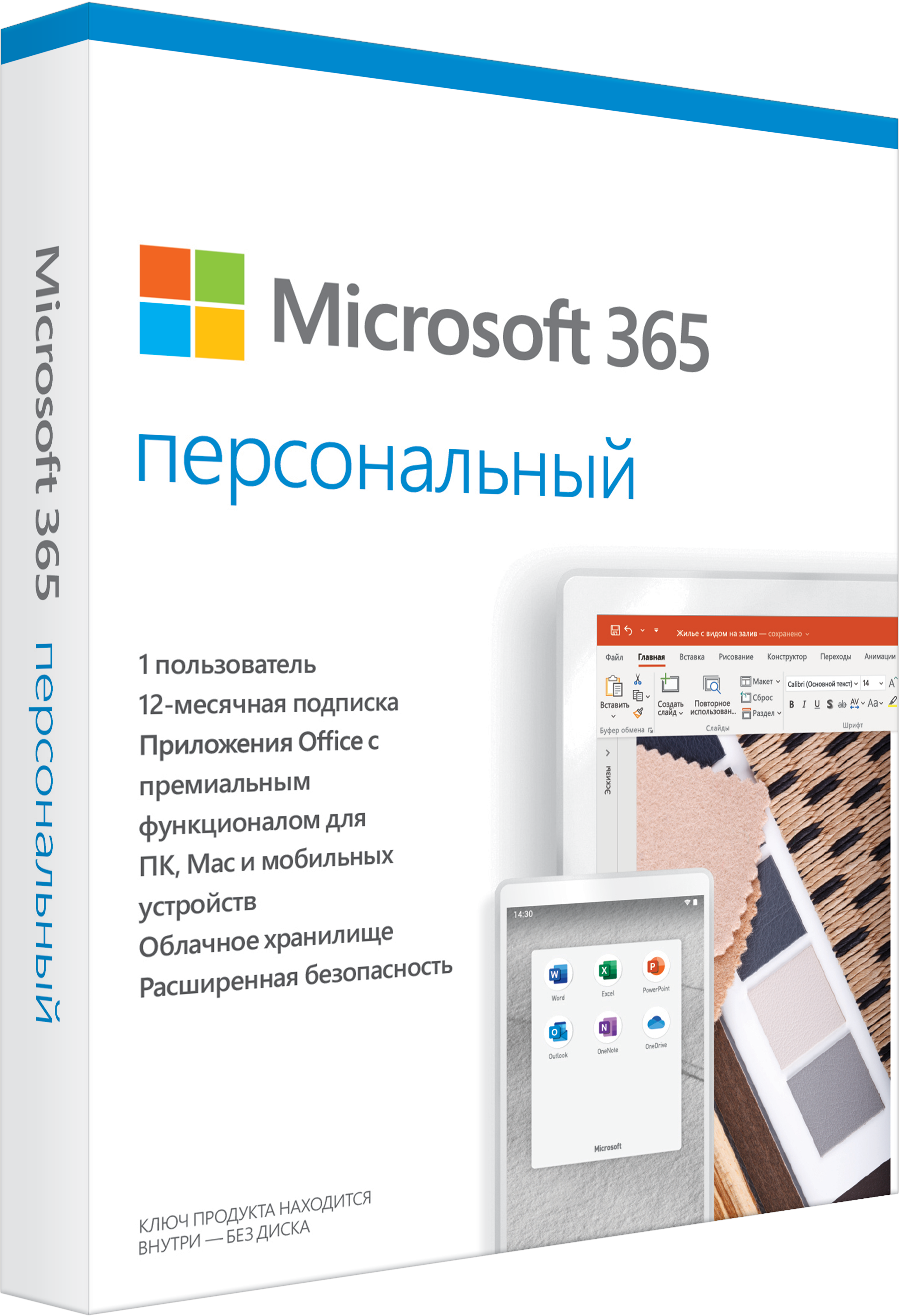 Office 365 Персональный прекрасно подходит для работы в любой точке мира, используя все свои устройства: 1 ПК/ Mac, 1 планшет и 1 смартфон . Вы всегда используете самое актуальное программное обеспечение и вам не надо думать о замене устаревших версий программ. Плюс, вы получаете 1024 ГБ в облачном хранилище OneDrive для мгновенного доступа к своим документам, фотографиям и видеозаписям. Также каждый пользователь получает 60 беплатных минут в Skype каждый месяц для звонков на стационарные телефоны России.