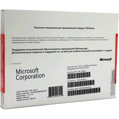 Microsoft GGK-Windows Professional 7 SP1 32-bit/64-bit Russian Legalization DSP OEI DVD